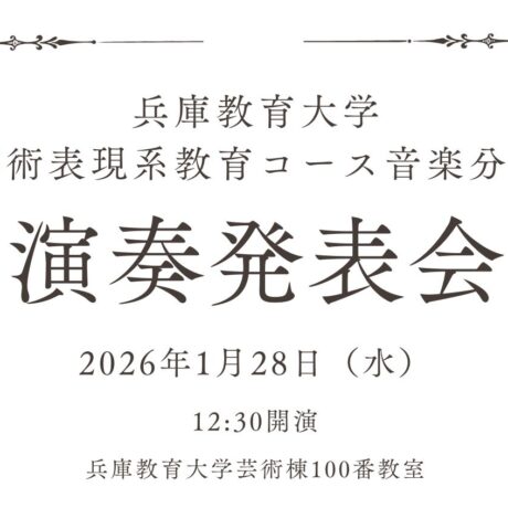 学 部: 器楽演習Ⅰ&Ⅱ、合奏演習、初等音楽、音楽科教育法Ⅲ&Ⅳ、指揮法演習